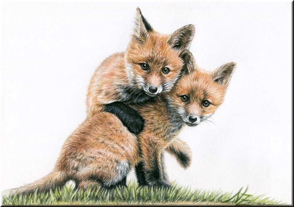 Fuchskinder, Fox Kids, Buntstiftzeichnung, coloured pencil drawing | |